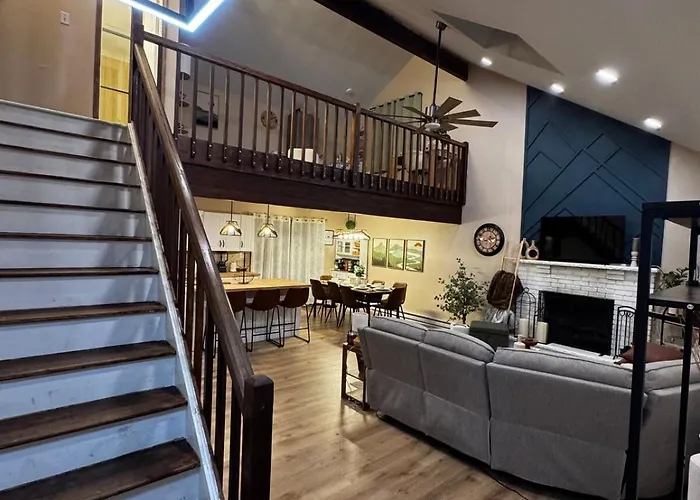 Situated a 17-minute walk from Tobyhanna State Park, Pocono Mountain Loft Style Home Tobyhanna invites guests to relax at a patio.